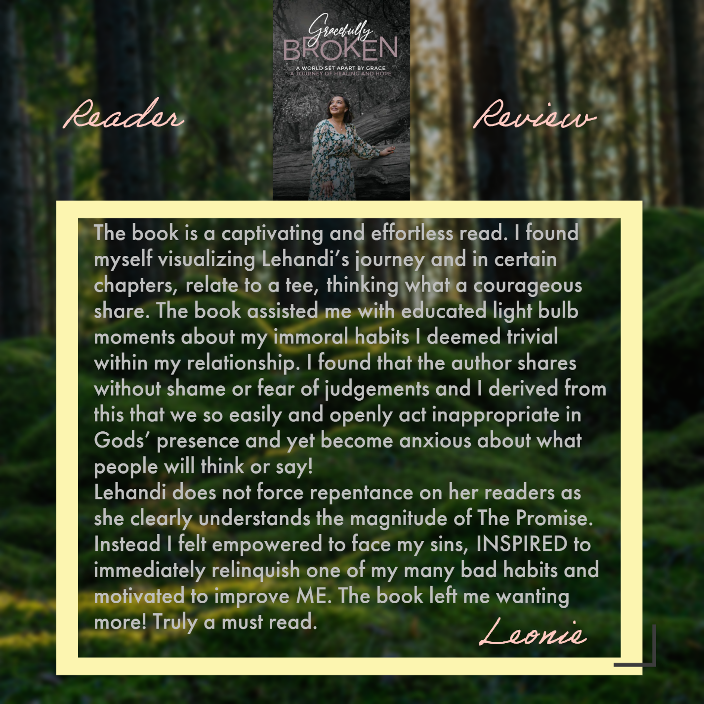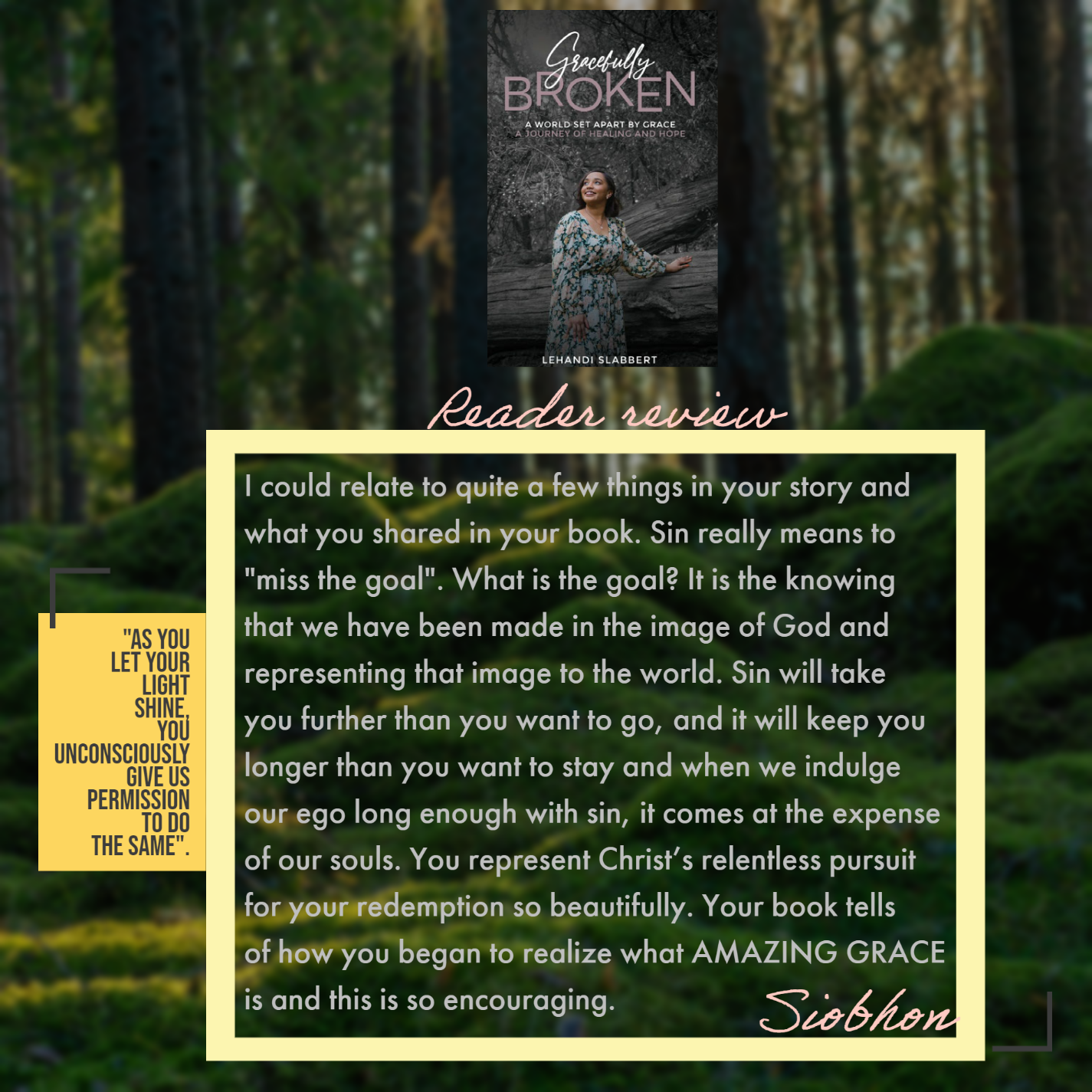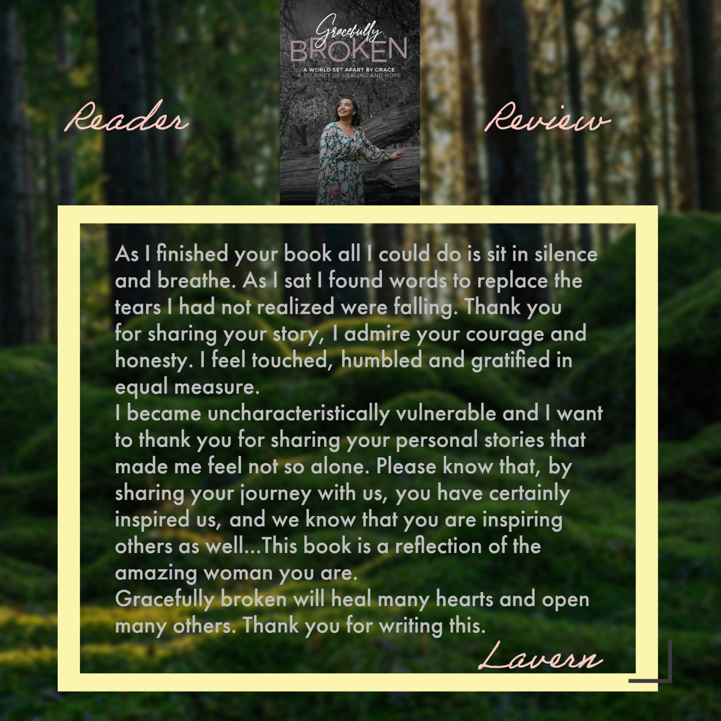 Gracefully Broken is for everyone who’s ever felt lost and hopeless. For the many who struggle with their past and how to let go and allow us to be who we are and not what others have defined us to be. Write your own story, own your truth, and discover a world set apart by grace.