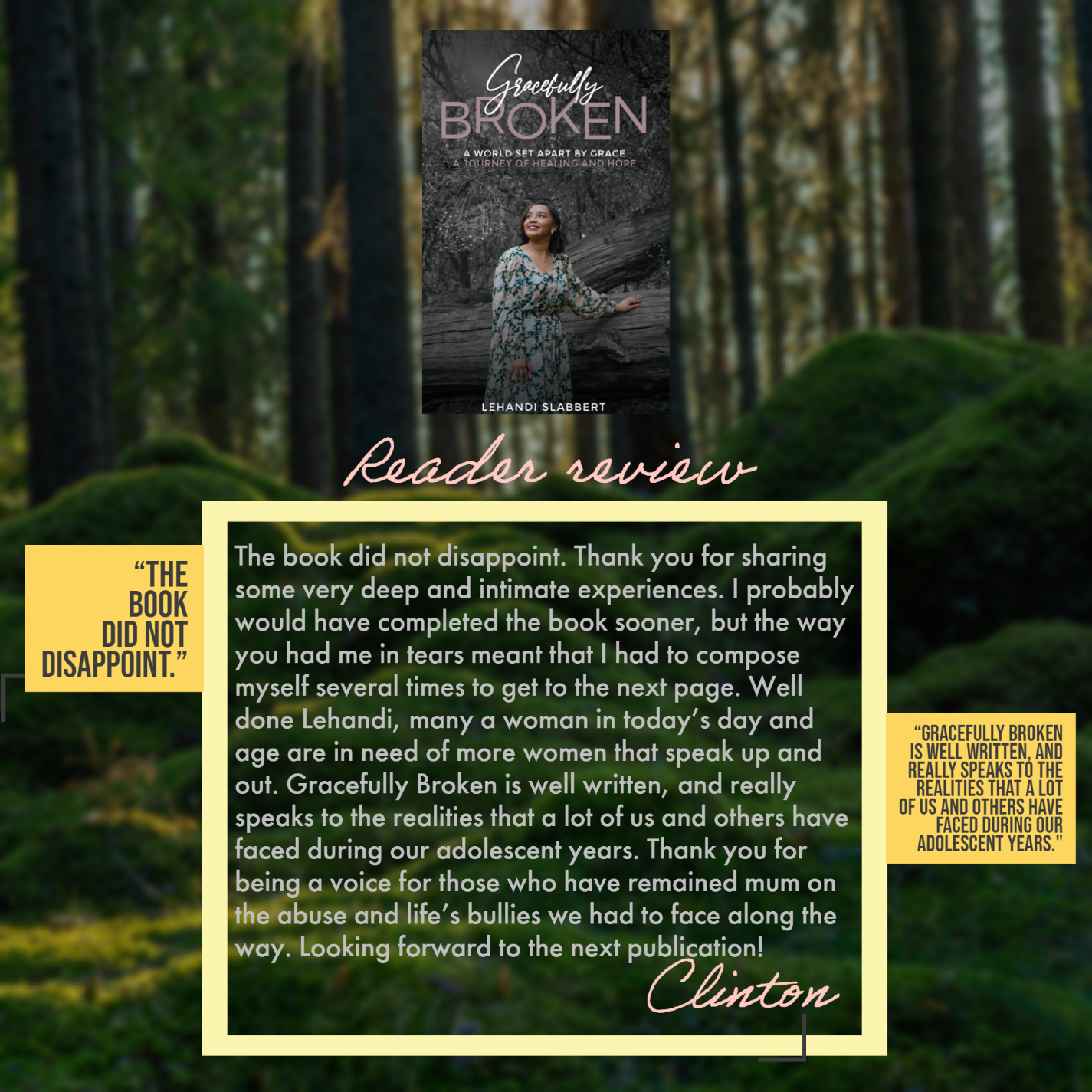 Gracefully Broken is a story of my resilient journey from Trauma to Triumph –